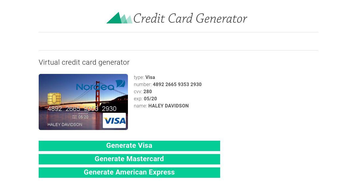 Virtual Credit Card Generator / Top 10 Credit Card Generators in 2020 - Daily Money Saving. This is even timesaving and reliable too. A virtual credit card can be made instead. Usually, it will provide the postal code, expiring date as well as security code. Virtual credit card is only disposable credit card that is made randomly at any time you want to make an online shopping. Virtual credit card is not actually like a credit card physically.